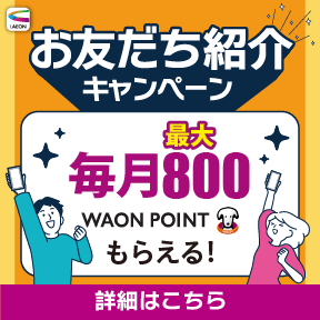 iAEONアプリでお友だちを紹介すると毎月最大で800WAON POINTがもらえるキャンペーン開催中!