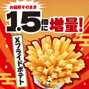 価格はそのまま!!Xフライドポテト1.5倍に増量!