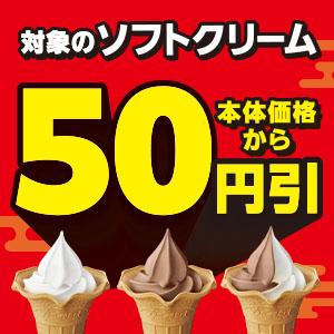 対象のソフトクリームが今なら通常本体価格から各50円引き!ミニストップアプリ・ミニストップアプリ版モバイルオーダークーポンご利用でさらに50円引き!この機会にぜひお試しください!