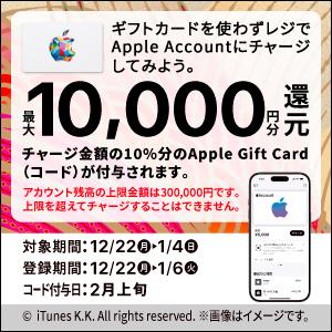 Apple Accountに5,000円以上チャージすると最大10%分のApple Gift Card(コード)がもらえる!