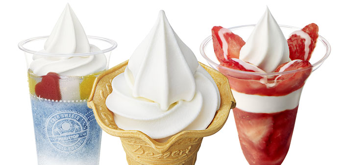 創業当初より販売している「ソフトクリーム バニラ」に加え、1995年にハロハロ、1998年にフレーバーソフト、2000年にパフェの販売を開始しました。さらに2013年には、こだわりの原料を使い付加価値をつけた「プレミアムソフト」シリーズが新たにラインアップに加わりました。