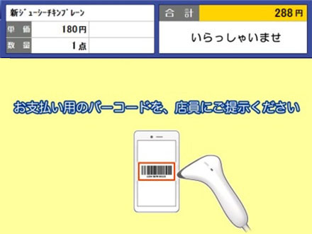 スマホアプリ上のバーコードを読み取ることで、事前に登録したクレジットカードや事前にチャージした分から決済できるサービスです。