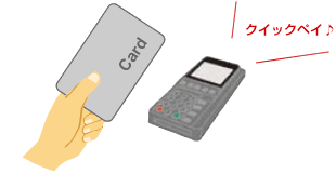 店舗の電子マネー端末にカードや携帯電話をかざすだけでお支払いができる、サインや事前のチャージ(入金)がいらない「簡単・スピーディー・おトク」なサービスです。