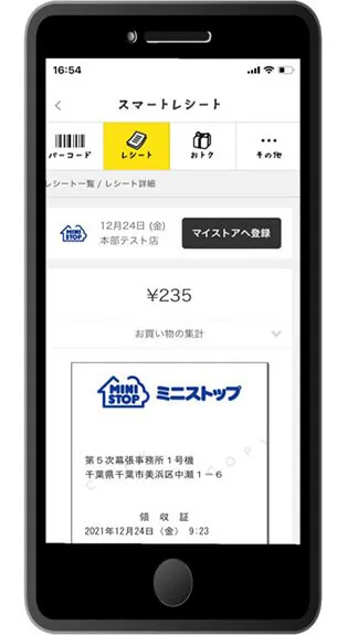 - 「ミニストップアプリ」上でレシートを管理・確認できるようになることです。