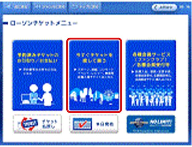「ローソンチケットメニュー」から「今すぐチケットを探して買う」ボタンをタッチ。