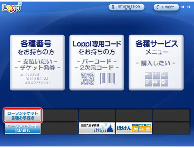 予約したチケットを、Loppiで引換えできます。引換期間はチケット予約時にご案内しますので必ずご確認ください。引換えは24時間可能ですが、引換期間最終日は23:00までとなっております。