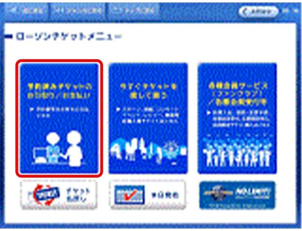 「ローソンチケットメニュー」から「予約済みチケットのお引取り/お支払い」ボタンをタッチ。