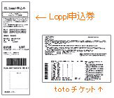 レジで「MINISTOP Loppi申込券」を渡し、「totoチケット」を発行してもらおう。- ※引換券発行後、30分以内にレジまでお持ちください。