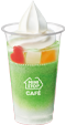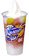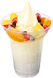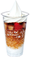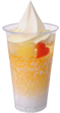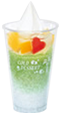 食べやすさを考え、氷とソフトクリームの間にゼリーの位置を変更