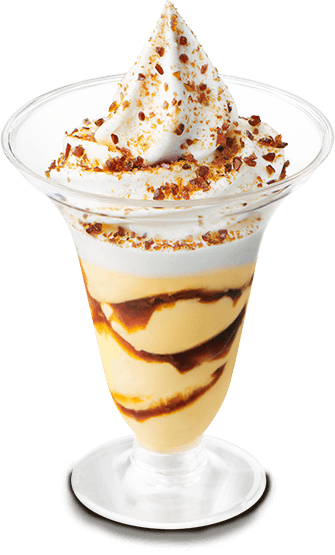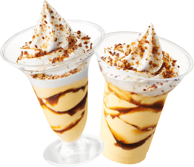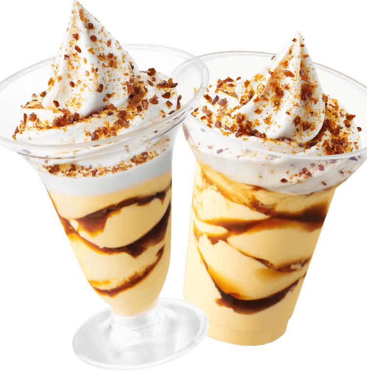 ※得盛なめらかプリンパフェはなめらかプリンパフェの2倍の量のプリンを使用しております。
