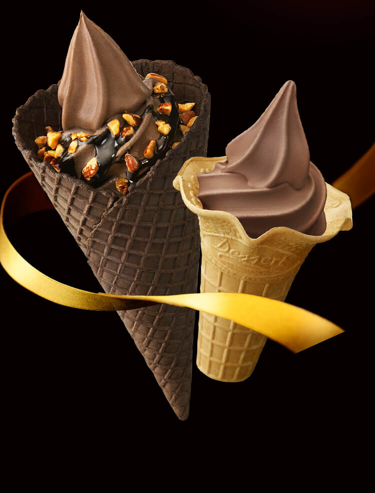 ※「贅沢ベルギーチョコソフト」は、 ワッフルコーンのみの販売となります。 また、「贅沢ベルギーチョコソフト」のミックスは、 販売しておりません。※「贅沢ベルギーチョコソフト」は、ワッフルコーンのみの販売となります。また、「贅沢ベルギーチョコソフト」のミックスは、販売しておりません。