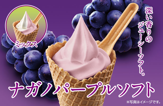 ナガノパープル果汁の風味を最大限に活かした、ジューシーな味わいのソフトクリームです。