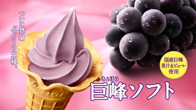 濃厚で芳醇な香りが特長のぶどう果汁を100%使用した、ぶどう本来の味わいが楽しめるソフトクリームです。