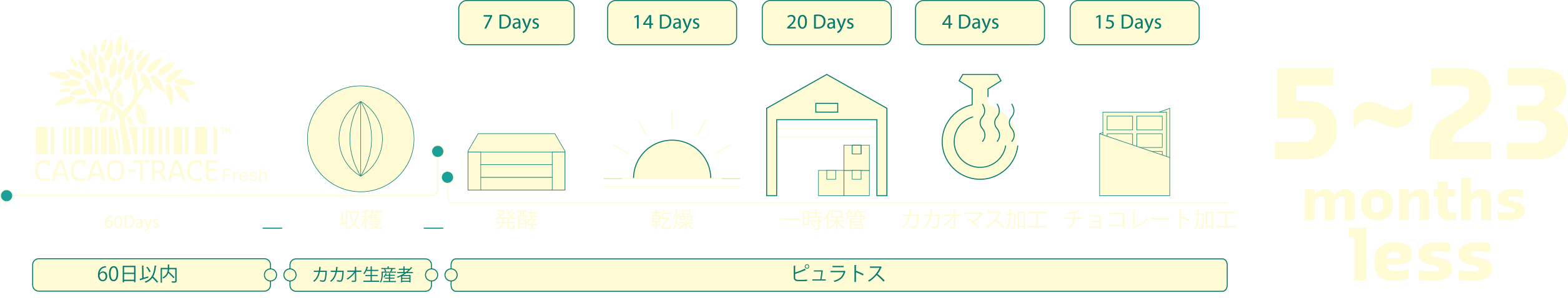 ベトナムでカカオの収穫から発酵、乾燥、カカオ・チョコレートに加工するまでを一貫して行い、カカオを60日以内に製造するベトナム産60DAYSチョコレート(カカオ・トレース認証)は、今まで味わったことのないフレッシュで華やかな香りとカカオアロマを楽しめるチョコレートです。