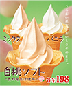 完熟白桃の果肉と果汁を使用したソフトクリームで、完熟した白桃のフルーツ感に、練乳で程よく甘さを加え、すっきりとした後味に仕上げました。