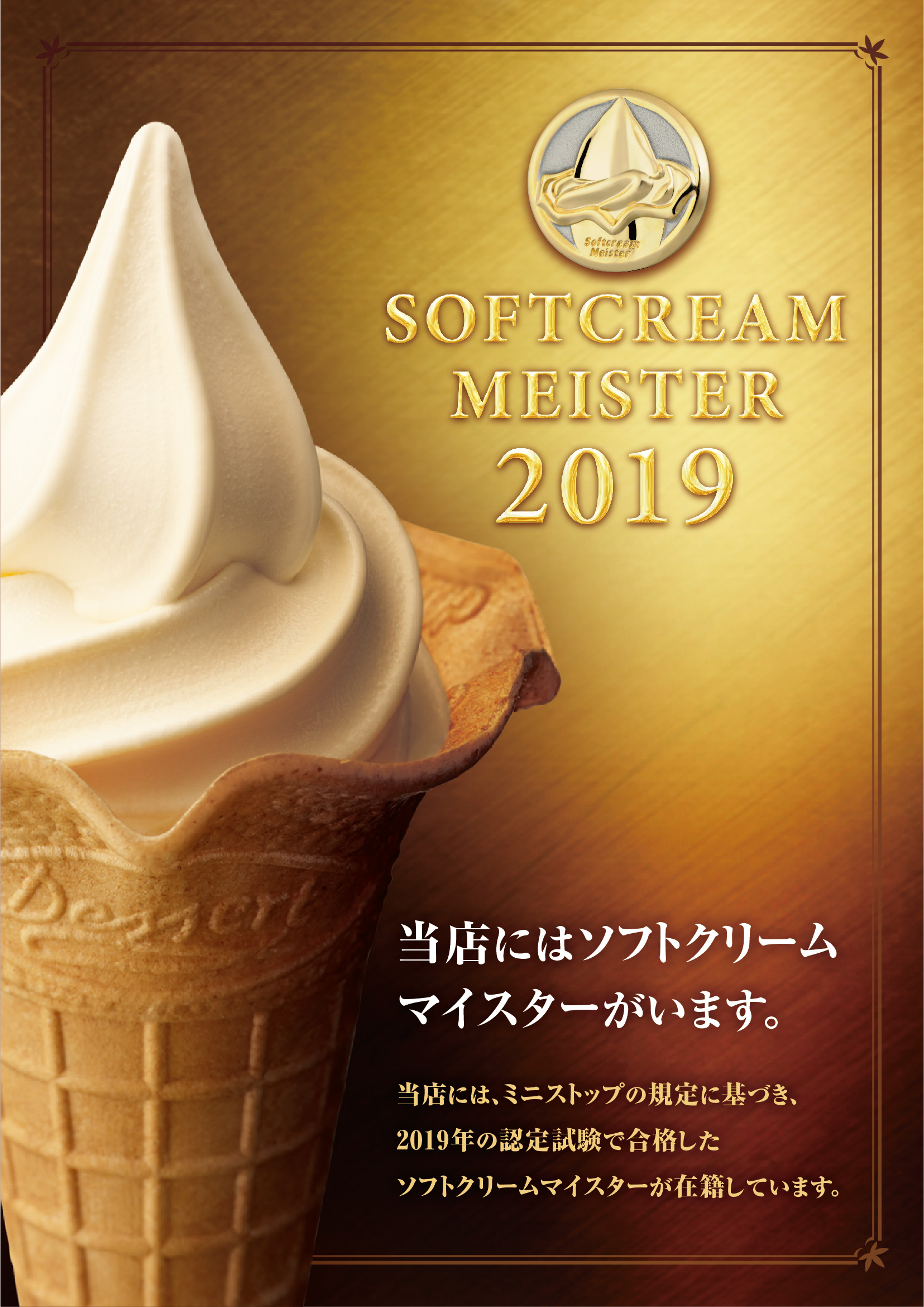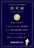 ソフトクリームマイスターは、ソフトクリームのプロフェッショナルとして豊富な知識を持つだけでなく、規定の量を美しい形でお届けできる技を持っています。毎年行われる厳しい試験に合格した者だけに与えられる、名誉ある称号なのです。 ソフトクリームマイスターのいるお店には右記の認定証が掲げられています。